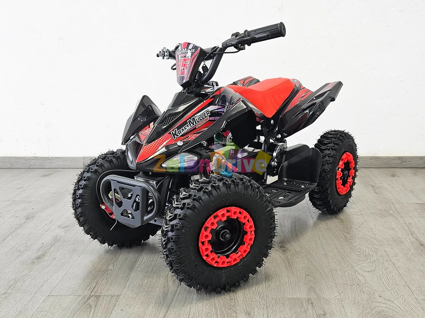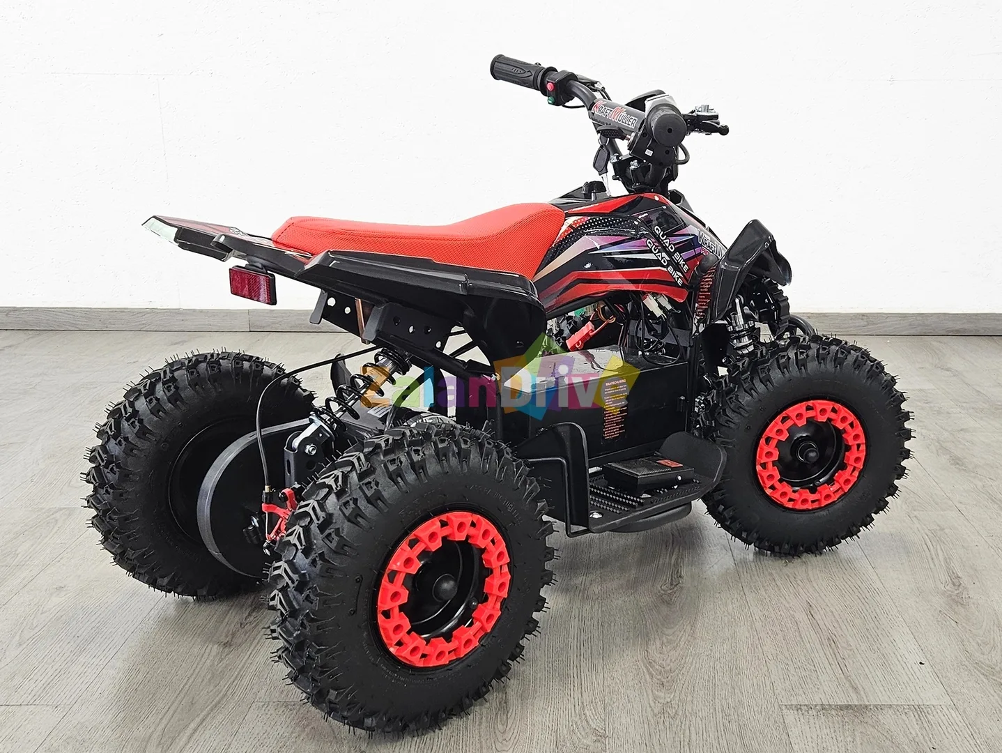 Ce magnifique quad électrique pour enfant Noir et Rouge de la marque Tox - Python Deluxe est équipé de 4 roues cross de taille 6 pouces .